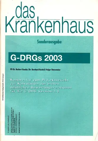 Das Krankenhaus; G-DRGs 2003; Wirtschaft; Gesundheit; Dr. N. Roeder; Dr. B. Rochell; Holger Bunzenneier