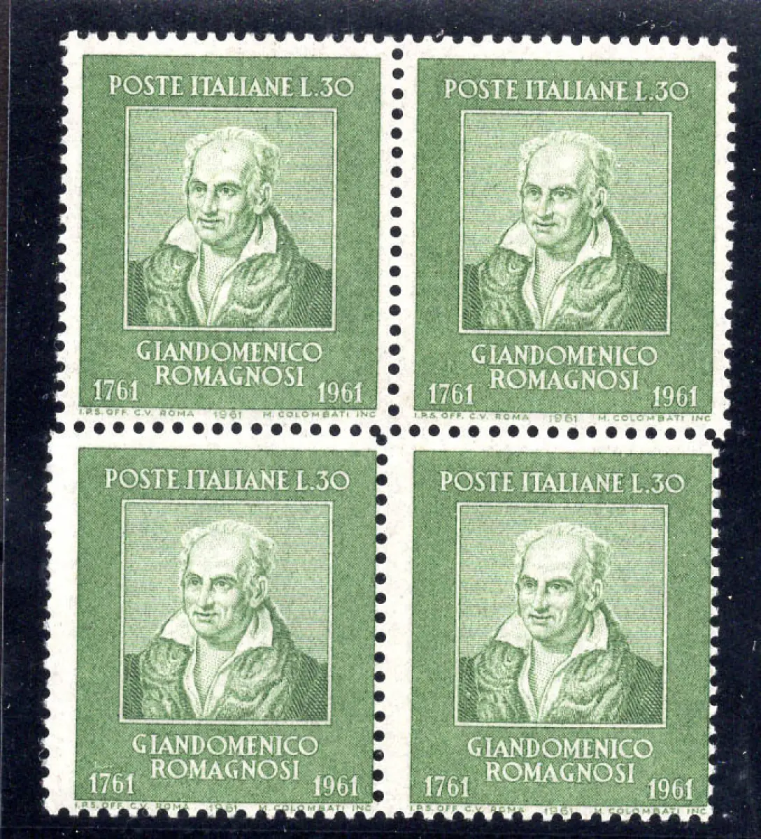 MNH - Vollgummi - Romagnosi Nr. 934 Viertel mit Sprung des Scalino-Kammbohrers zwischen den beiden oberen und den beiden unteren Exemplaren - Ungewöhnlich Cod. 811/17