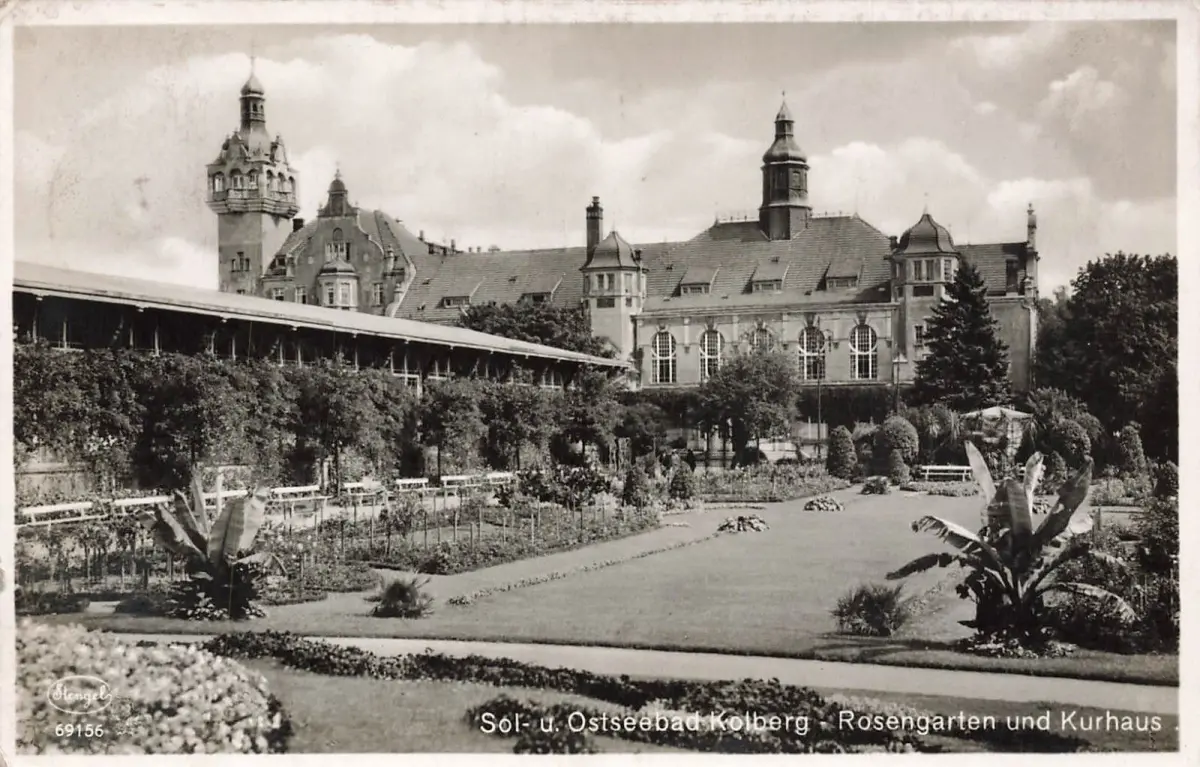 Rosengarten und Kurhaus in Ostseebad Kolberg Pommern Postkarte AK 1938
