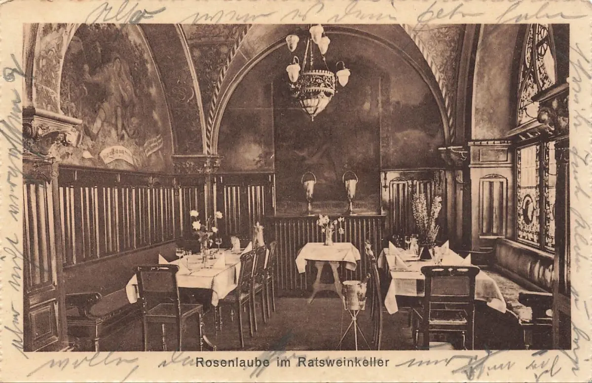 Rosenlaube im Weinhaus Ratsweinkeller Kiel Schleswig-Holstein Postkarten AK 1928