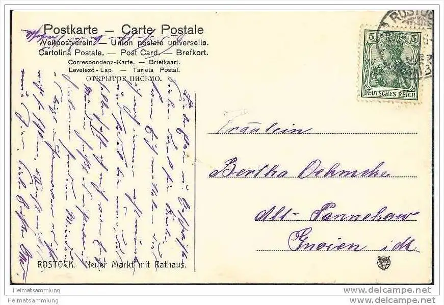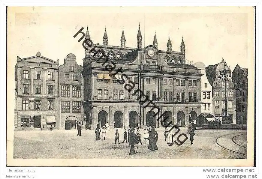 Rostock - Neuer Markt - Rathaus - leichte Gebrauchsspuren (G16874) gel. 1910