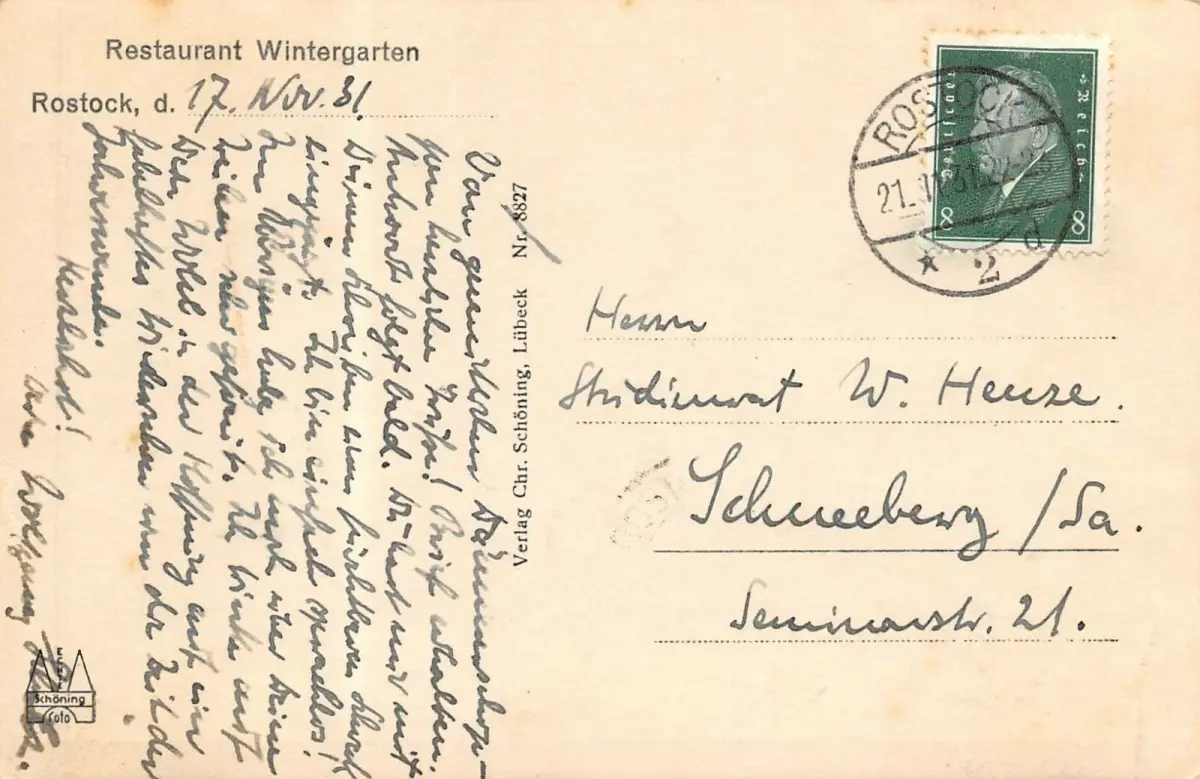 Rostock Universität Restaurant Wintergarten Postkarte 1931