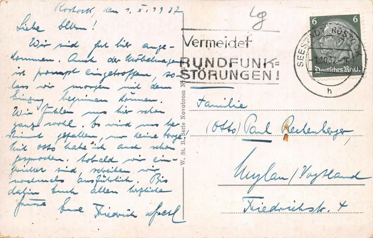 Rückseite: gelaufen 1937
