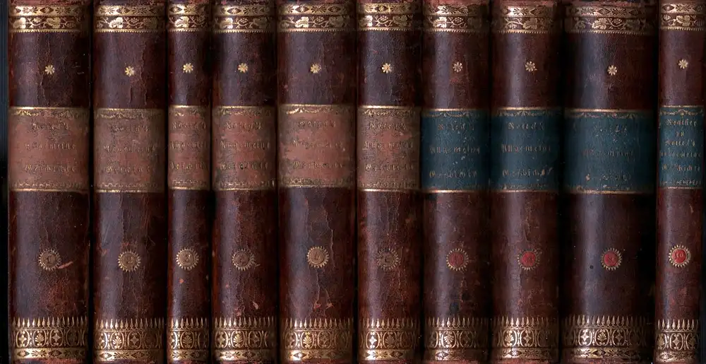 Freiburg, Herder, 1813-1827, Mit 10 Titelkupfern u. 9 synchropt. Falttabellen. 18 cm. OHLdr. mit unterschiedl. farb. Rsch.