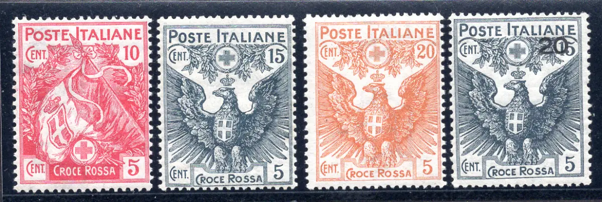 Vollgummi - postfrisch - Rotes Kreuz Nr. 102/105 die komplette Serie in hervorragender Qualität und überdurchschnittlicher Zentrierung - Gebraucht - Kat. euro 200 Cod. 14/16