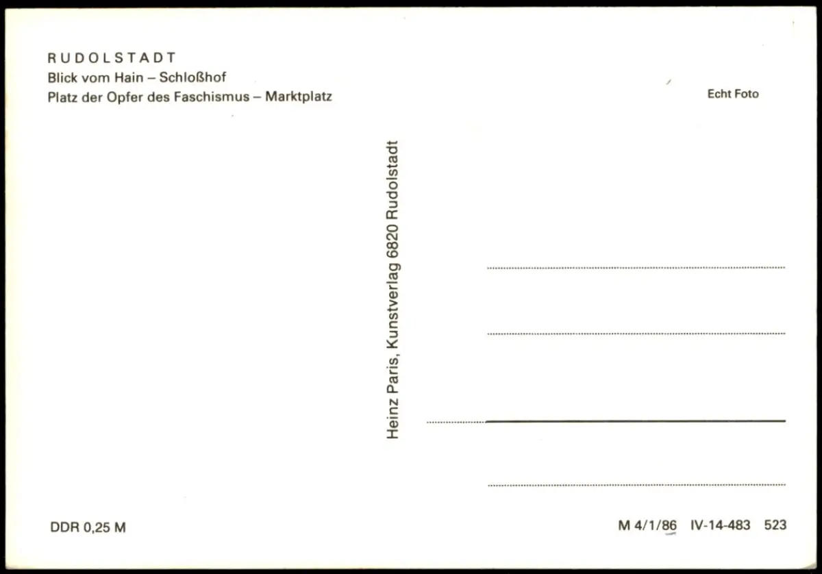 Verlag: Heinz Paris, Kunstverlag, 6820 Rudolstadt/Thür.