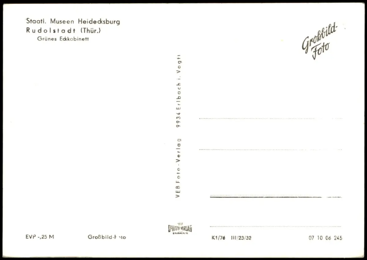 Rudolstadt Staatl. Museen Heidecksburg Grünes Edkkabinett zur DDR-Zeit 1976
