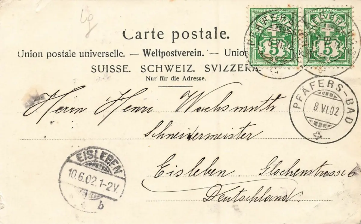 Rückseite von Bad Pfäfers Schweiz Postkarte AK 1902
