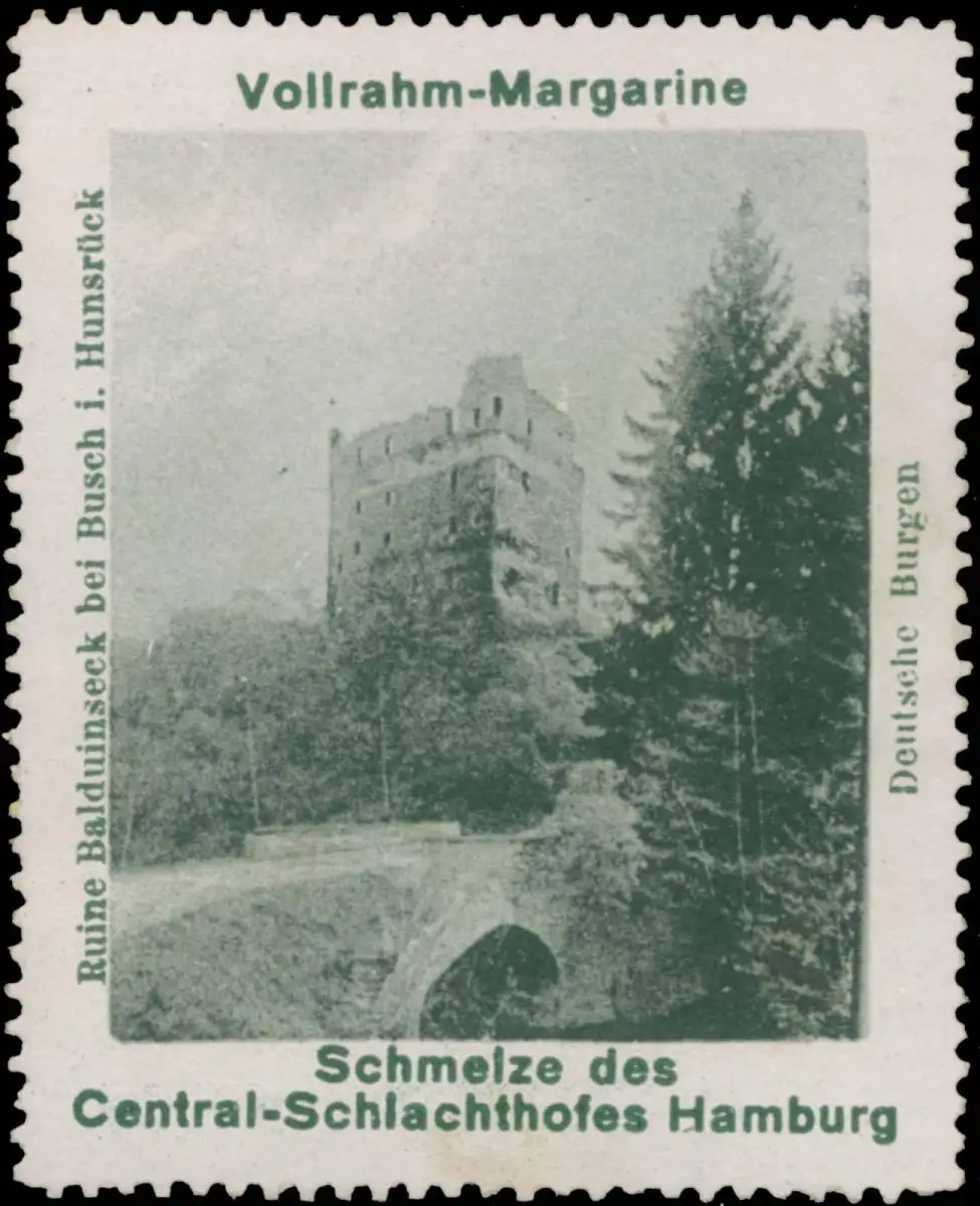 Deutsche Burgen, Vollrahm-Margarine, Schmelze des Central-Schlachthofes , Größe/Zustand: 6x5 , guter Zustand, Original alte Reklamemarke die seinerzeit für die Werbung benutzt wurde