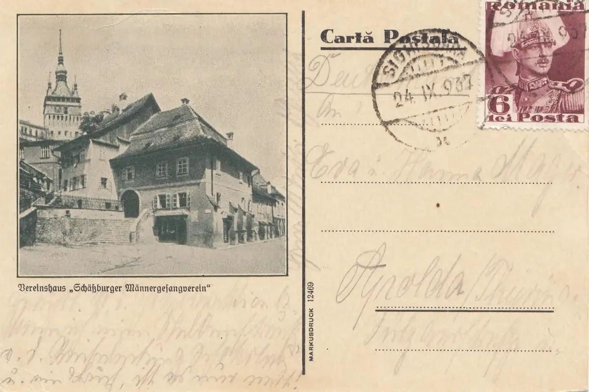 Rumänien: 1937: Ansicht Vereinshaus nach Apolda