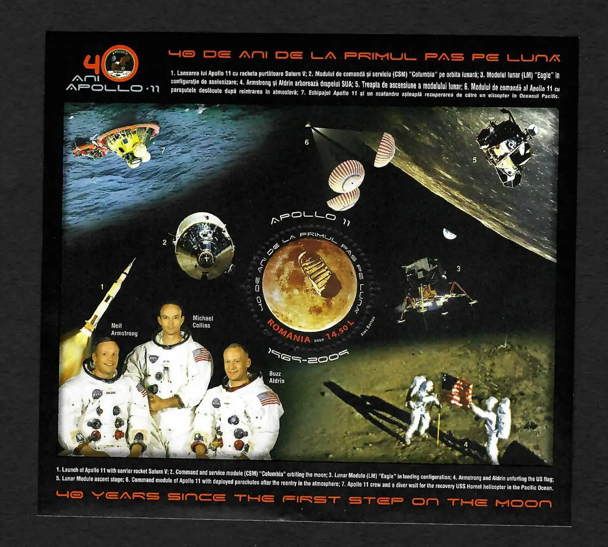 Rumänien: 40 Jahre First man on the moon, Apollo 11, Armstrong, Collins, Adrin