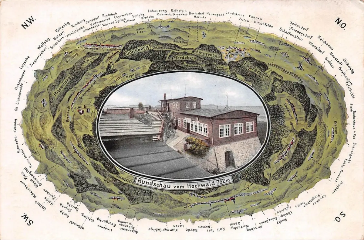 Rundschau vom Hochwald 752 m Aussichtsturm Zittauer Gebirge Postkarte AK