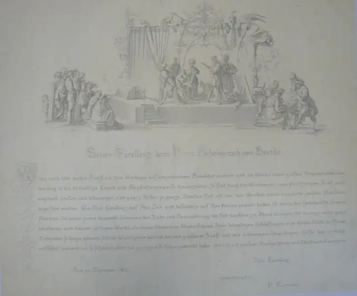 Unterzeichnet mit "Ihre Excellenz / unterthänigster / P. Cornelius / Rom im September 1815.". Auf festem Velin. 39 x 47,2 cm (Blattgröße)