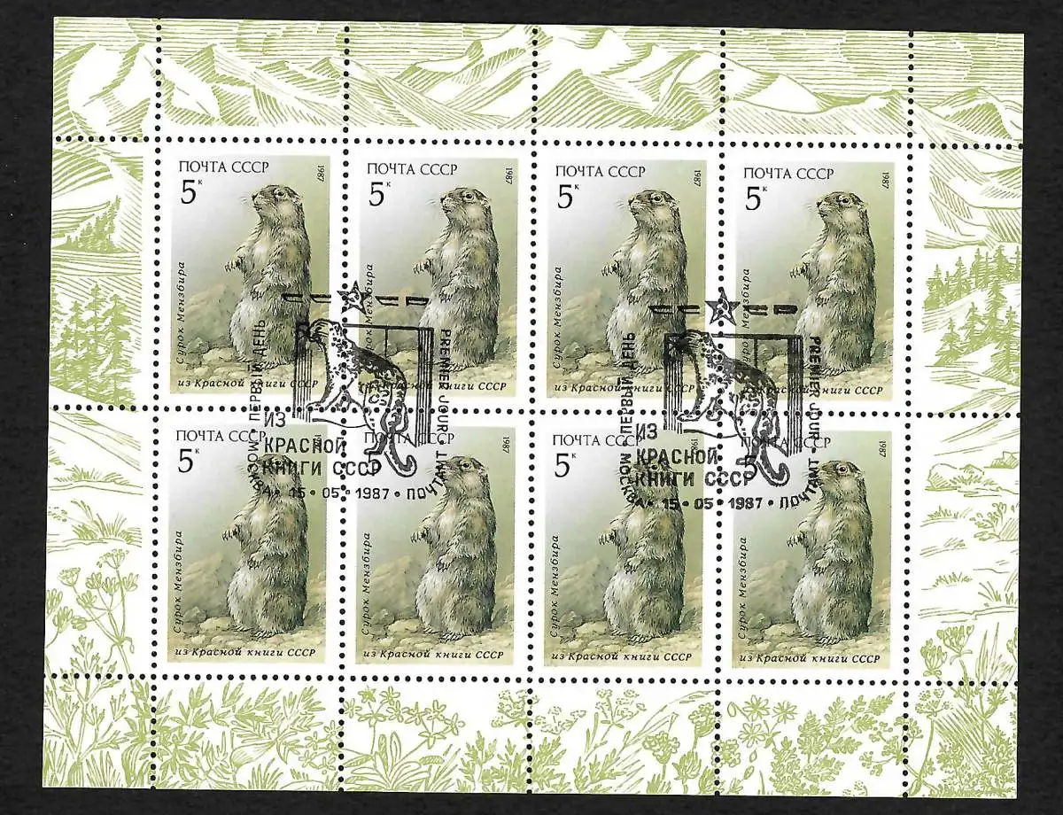 Russland 1987: Geschützte Tiere, Kleinbogen gestempelt