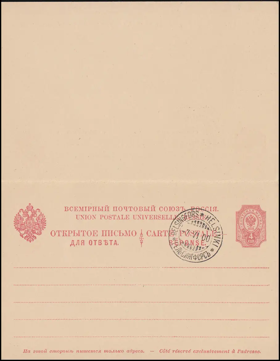 Russland / Finnland P 32 Doppelkarte 4/4 Kop. karmin Gef.-O HELSINKI 7.6.1900