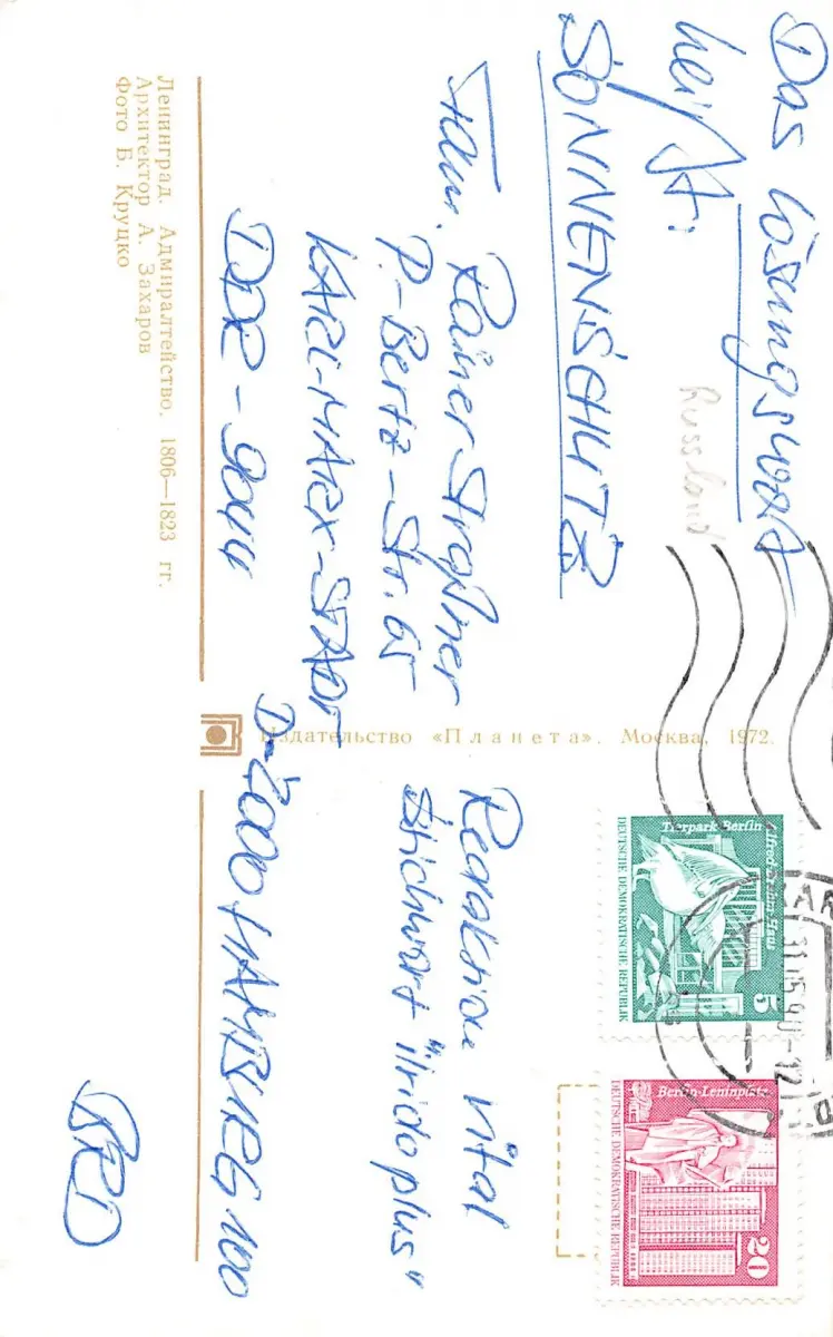 Karte aus der DDR nach Hamburg gelaufen.