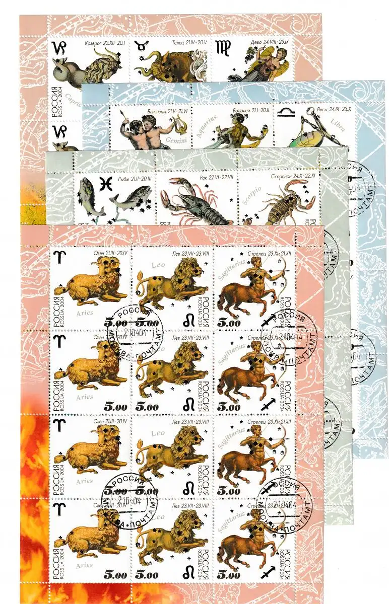 Russland: Tierkreiszeichen Bögen, gestempelt