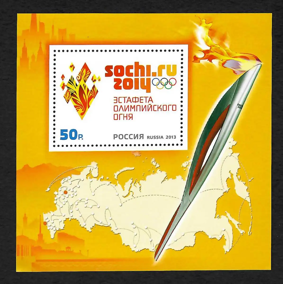 Russland: Winterspiele 2014, Fackellauf, Flamme, postfrisch