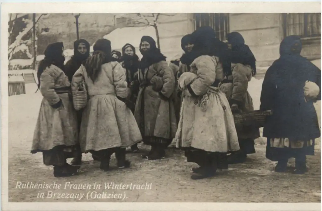 Ruthenische Frauen in Wintertrach in Brzezany -653876