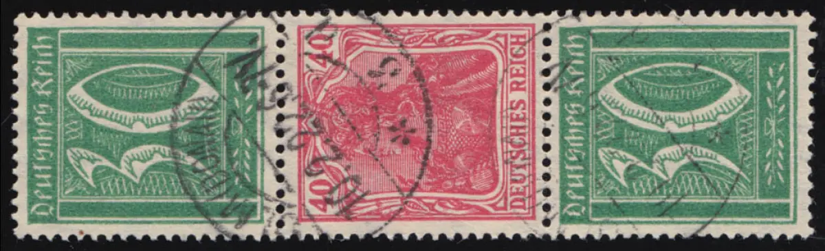S 28 Germania/Ziffern 30/40/30 Pf., ungefaltet gestempelt O Ulm 10.2.22
