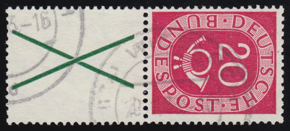 S 5 Zusammendruck Posthorn 20+X, WIESLOCH 20.1.53 Heftchenzähnung laut Abbildung