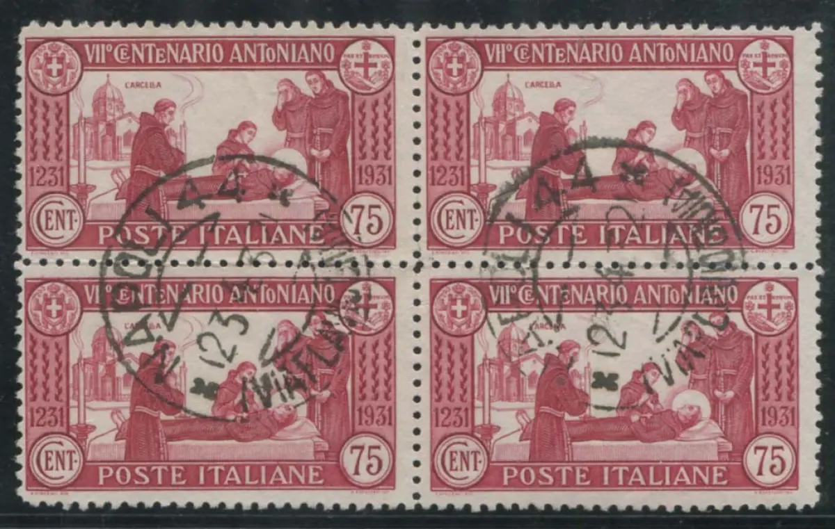 S. Antonio Cent. 75 gezahnte 12 wunderschöne gebrauchte Viertel - St. Antonius Cent. 75 Nr. 299 12 wunderschöne gebrauchte Viertelzahnung in sehr guter Qualität und guter Zentrierung - Selten - Kat. 2.000 Euro++ Code 54/7