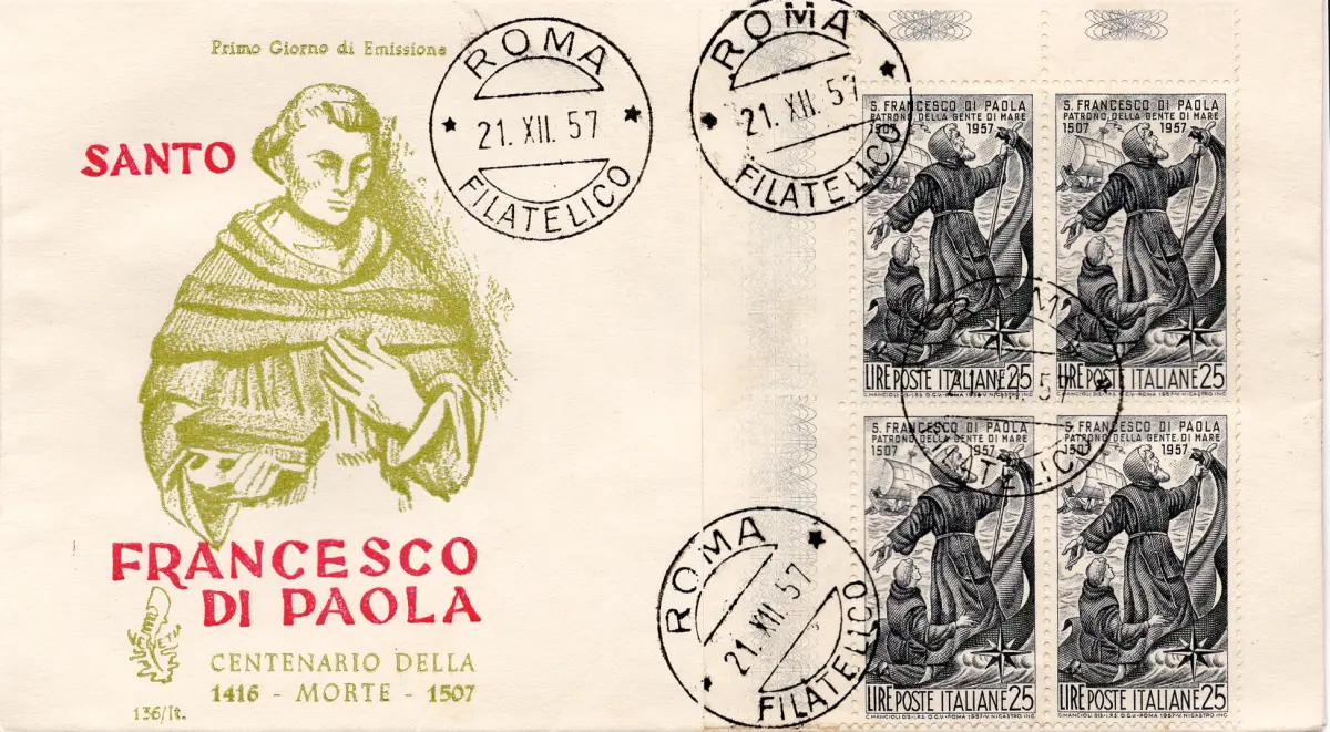 Umschlag - S. Francesco da Paola Nr. 825 Quartina a. di f. auf nicht gereistem Umschlag Annullierung Rom Philatelistisch - Uncommon Cod. 538/17