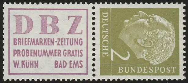 S13 Zusammendruck Heuss, postfrisch **