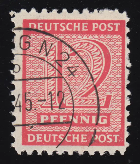 SBZ 123X Ziffer 12 Pf, WZ.1X, rot, O, gestempelt