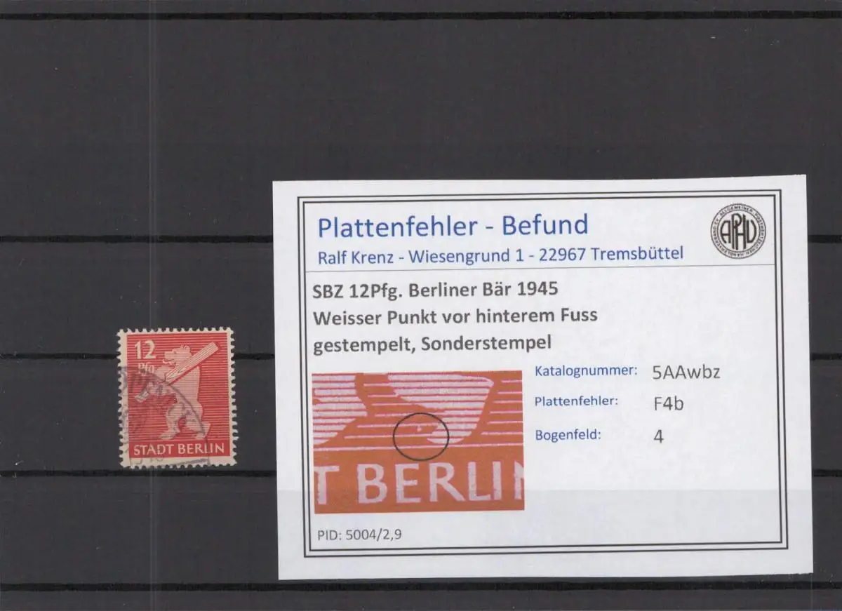 12Pfg. Berliner Baer, sauber gestempelt mit Plattenfehler gem. Plattenfehler Spezialkatalog