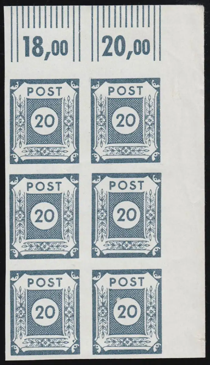 SBZ 48Ab Ziffer 20 Pf, 6er-Block o.r. - PLF III (F.29) **, geprüft Dr. Jasch BPP