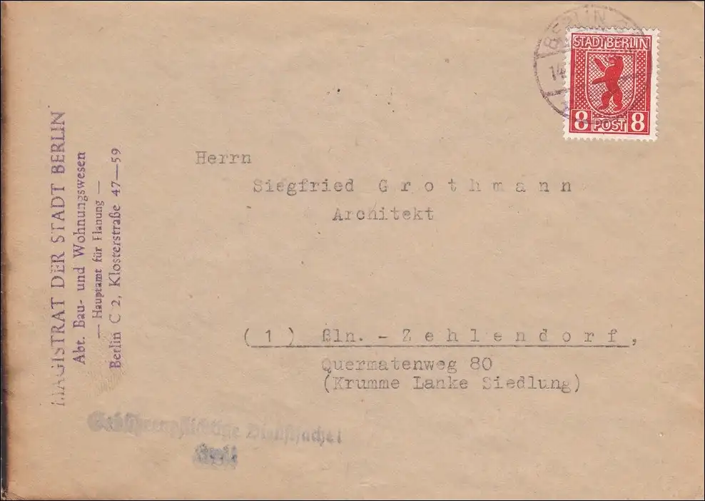 SBZ: Brief von Berlin nach Zehlendorf - violette Marke 1946
