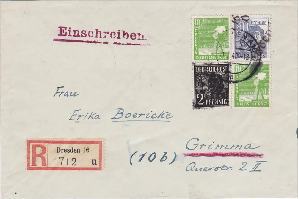 SBZ: Einschreiben aus Dresden nach Grimma 1948 - Handstempel