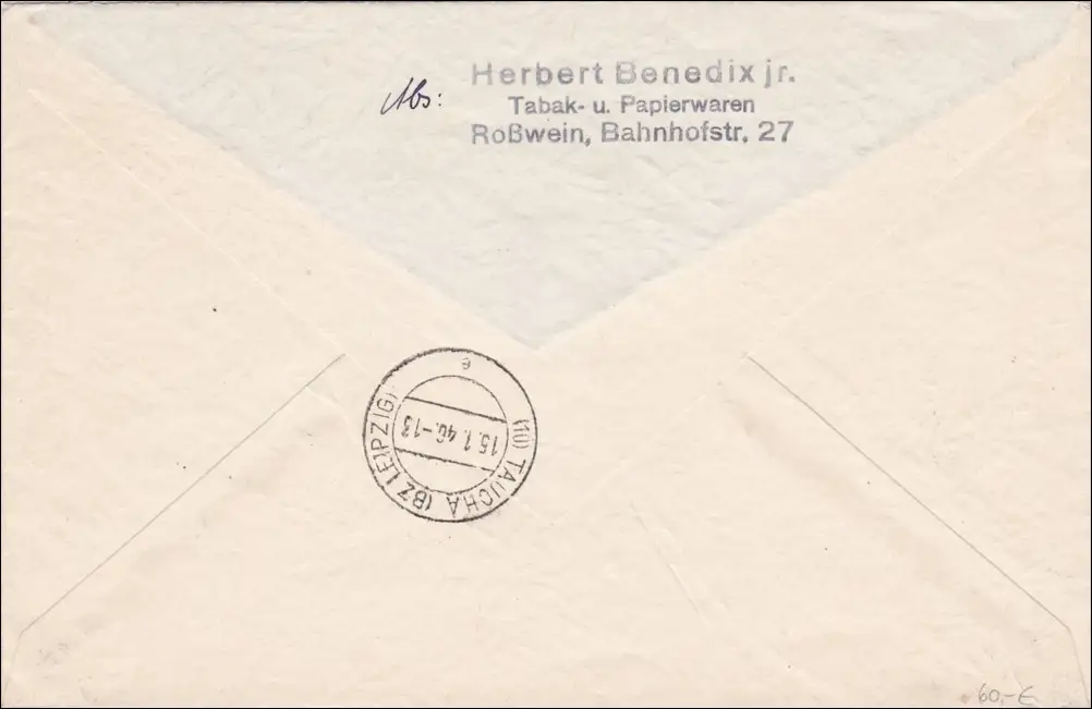 SBZ: Einschreiben aus Roßwein nach Taucha 1946