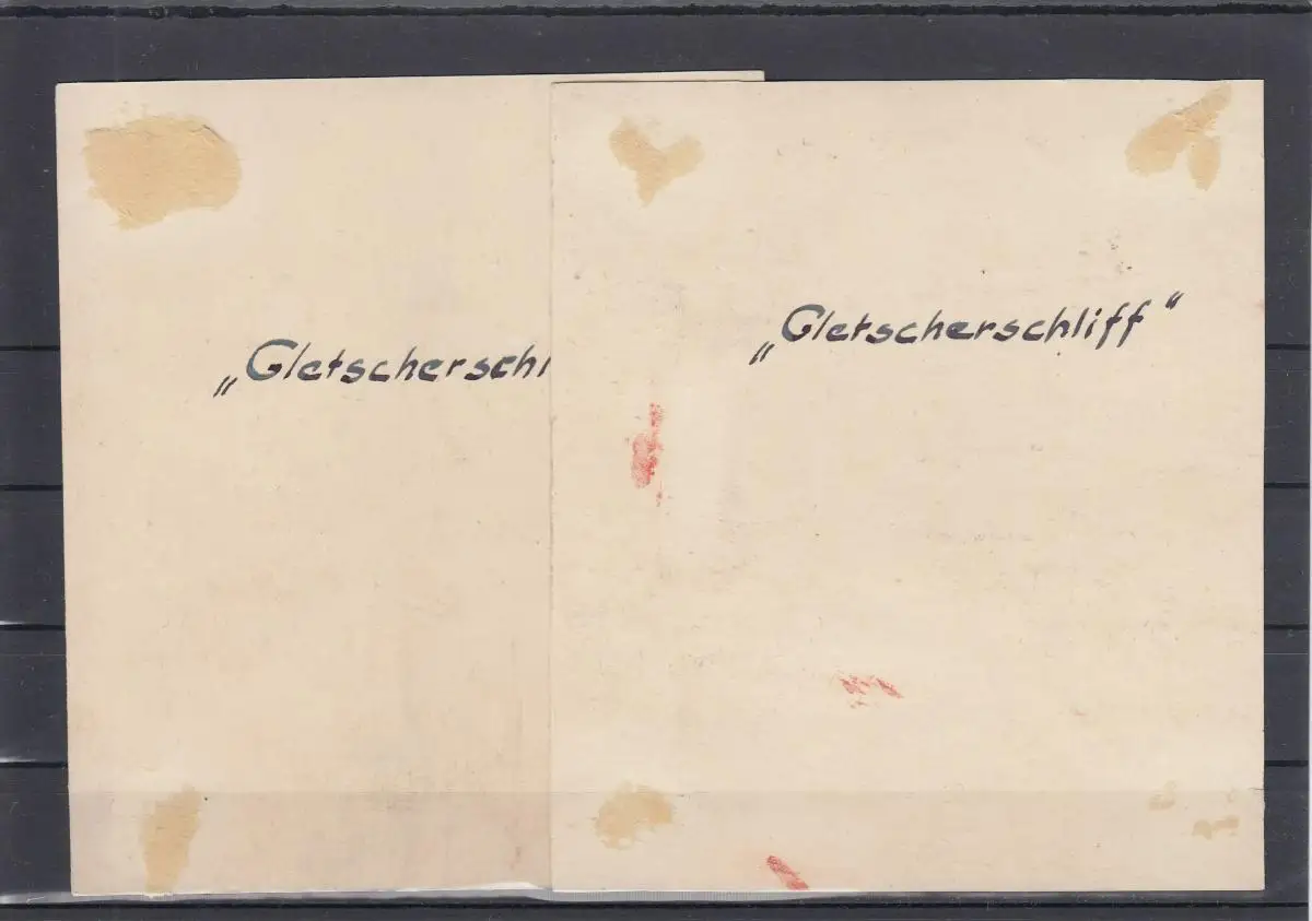 SBZ: Essay MiNr. 26-28, 4x Rückseite beschriftet Gletscherschliff, gr. Format