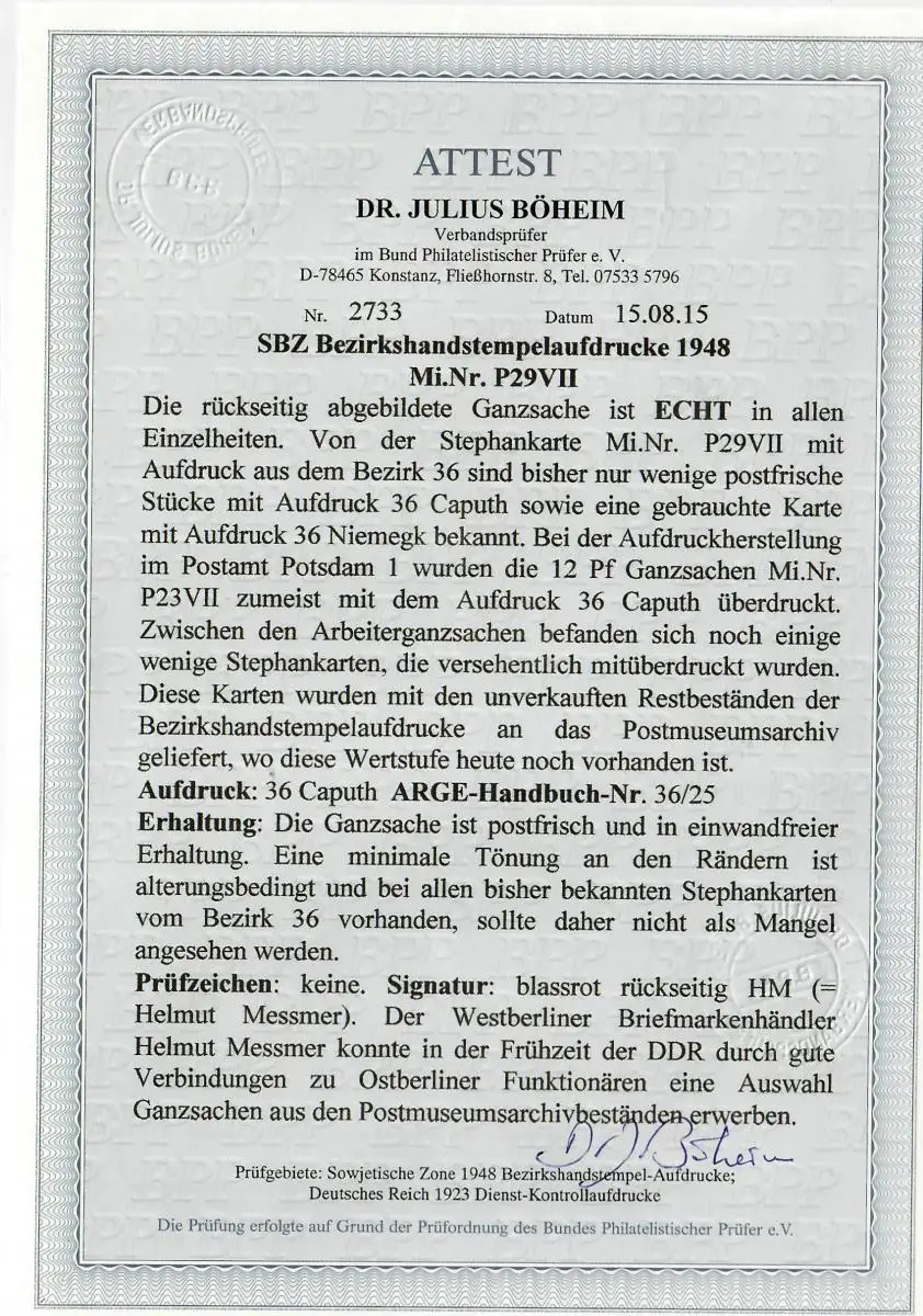 SBZ: Ganzsache MiNr. 29 VII, postfrisch, echt, einwandfrei, BPP Attest