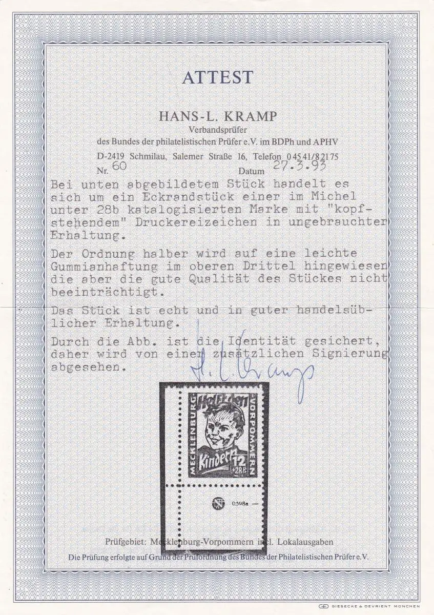 SBZ: Mecklenburg-Vorpommern: MiNr. 28bDZK, Eckrand, Kopfstehend DZ