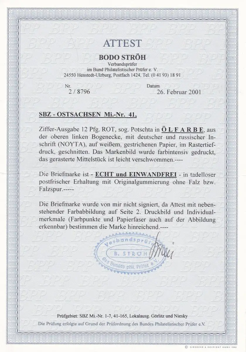 SBZ: MiNr. 41, postfrisch in Ölfarbe, Bogenecke