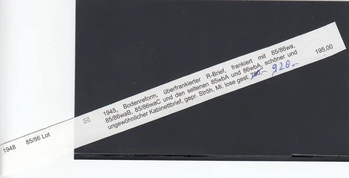 SBZ: überfrankierter R-Brief MiNr. 85/86wa, 85/86waB, 85/86waC und 85wbA, 86wbA