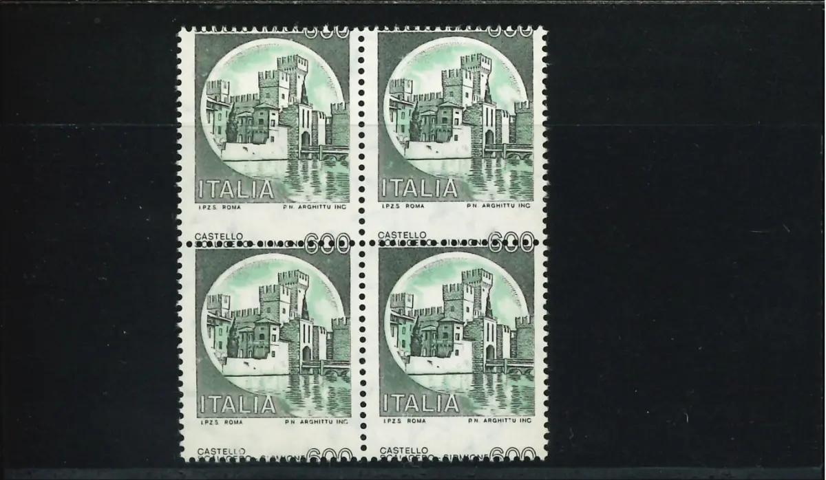 MNH - Vollgummi - CASTELLI 600 L. STARK VERTIKAL VERSCHOBENE VERZAHNUNG VIERTEL - Kat. euro 300 Cod. ITAV_0932
