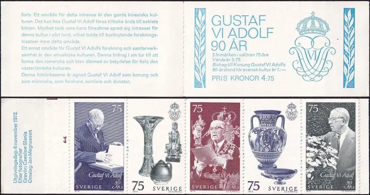 SCHWEDEN 1972 Mi-Nr. MH 38 Markenheft/booklet ** MNH Formnummer 1