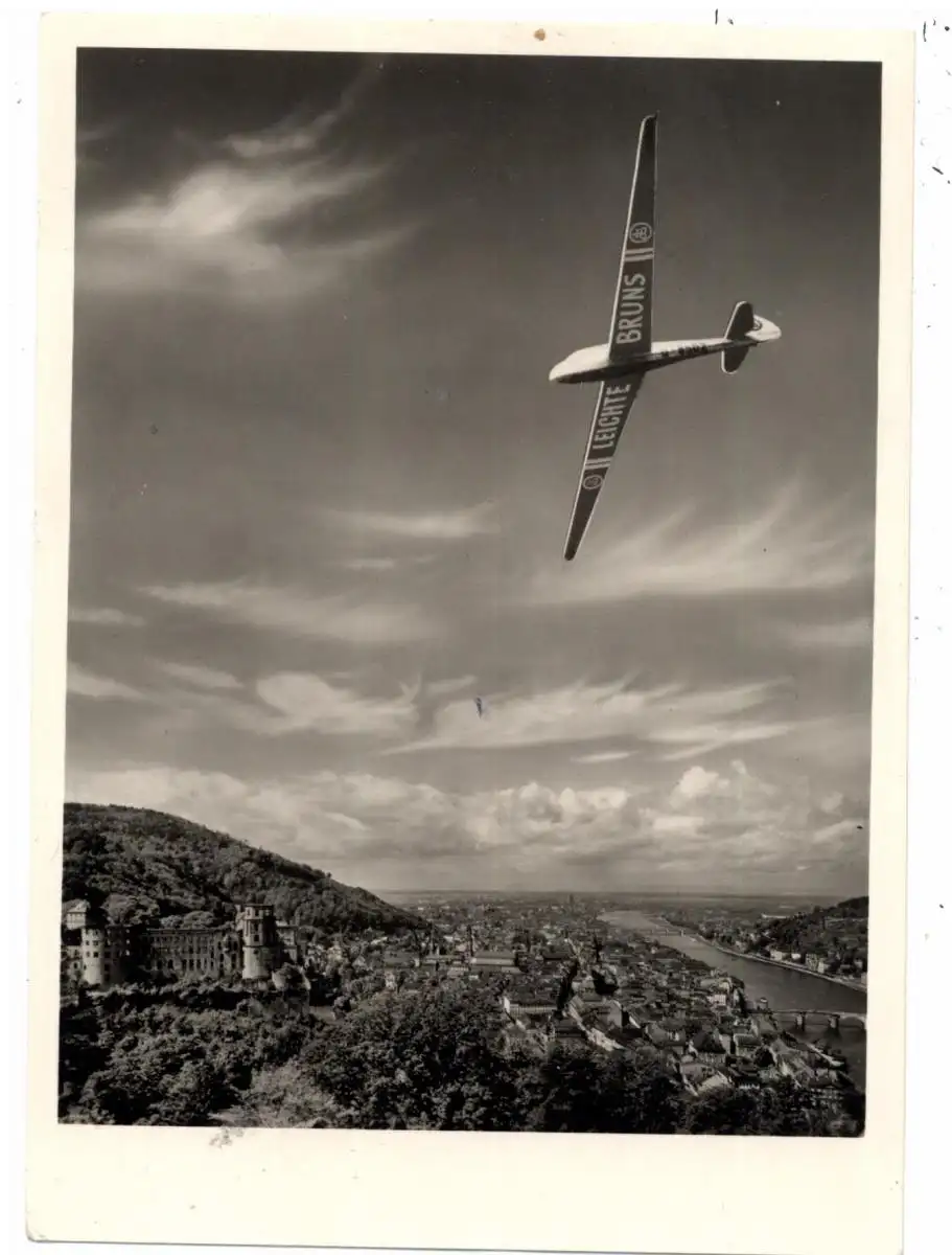 SEGELFLIEGEN - Werbe-Karte "Die leichte Bruns" über Heidelberg, 1954
