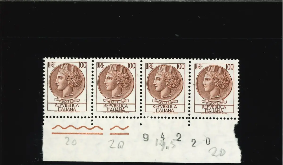 MNH - Vollgummi - SIRACUSANA 100 L. VIERSTREIFEN DER DRITTSCHMALSTE ZUM SPRINGEN Cod. ITAV_0464