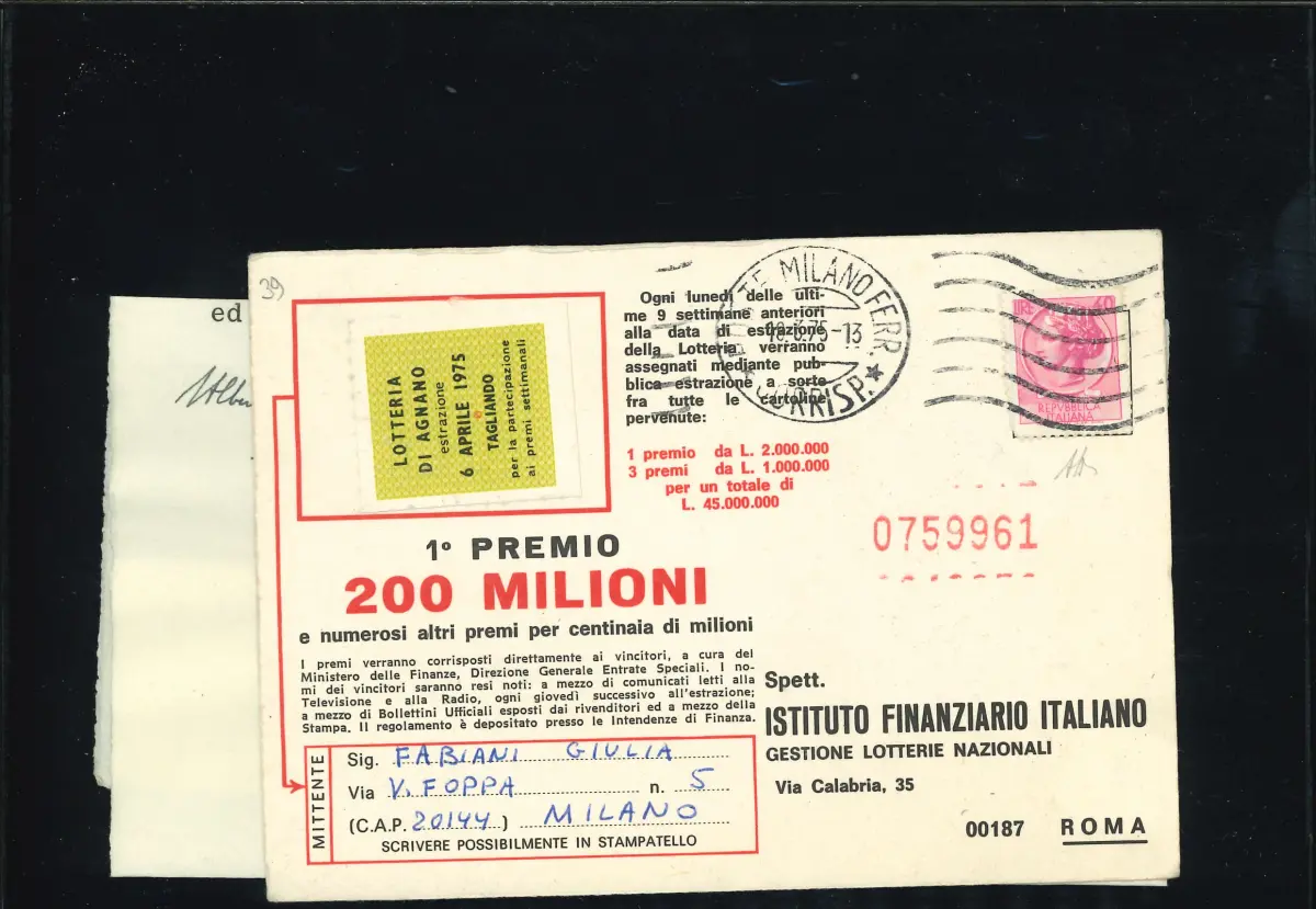 Postkarte - SIRACUSANA 40 L. FALSO DI MILANO FALSO DI MILANO ON CONCORSO POSTKARTE CERT DIENA F 678 Cod. ITAV_1593
