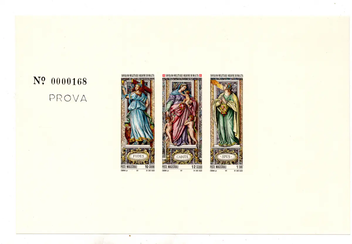 Ohne Gummi - SMOM - Die theologischen Tugenden Blatt Nr. 7 Druckprobe auf weißem Papier ohne Wasserzeichen Cod.1821/WEB
