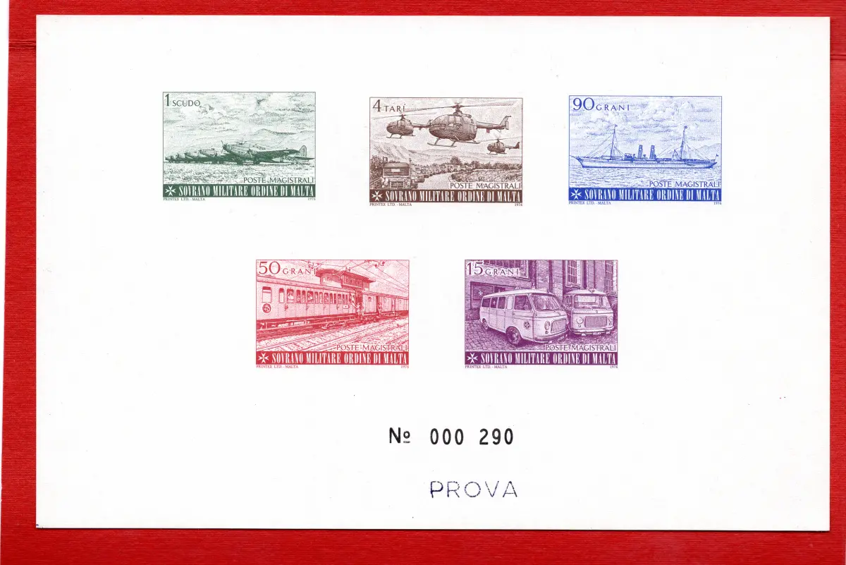 Ohne Gummi - SMOM - Transportmittel Bestell-Nr. 120/124 Drucktestbogen weißes Papier ohne Wasserzeichen - Ungewöhnlich Cod.1828/WEB