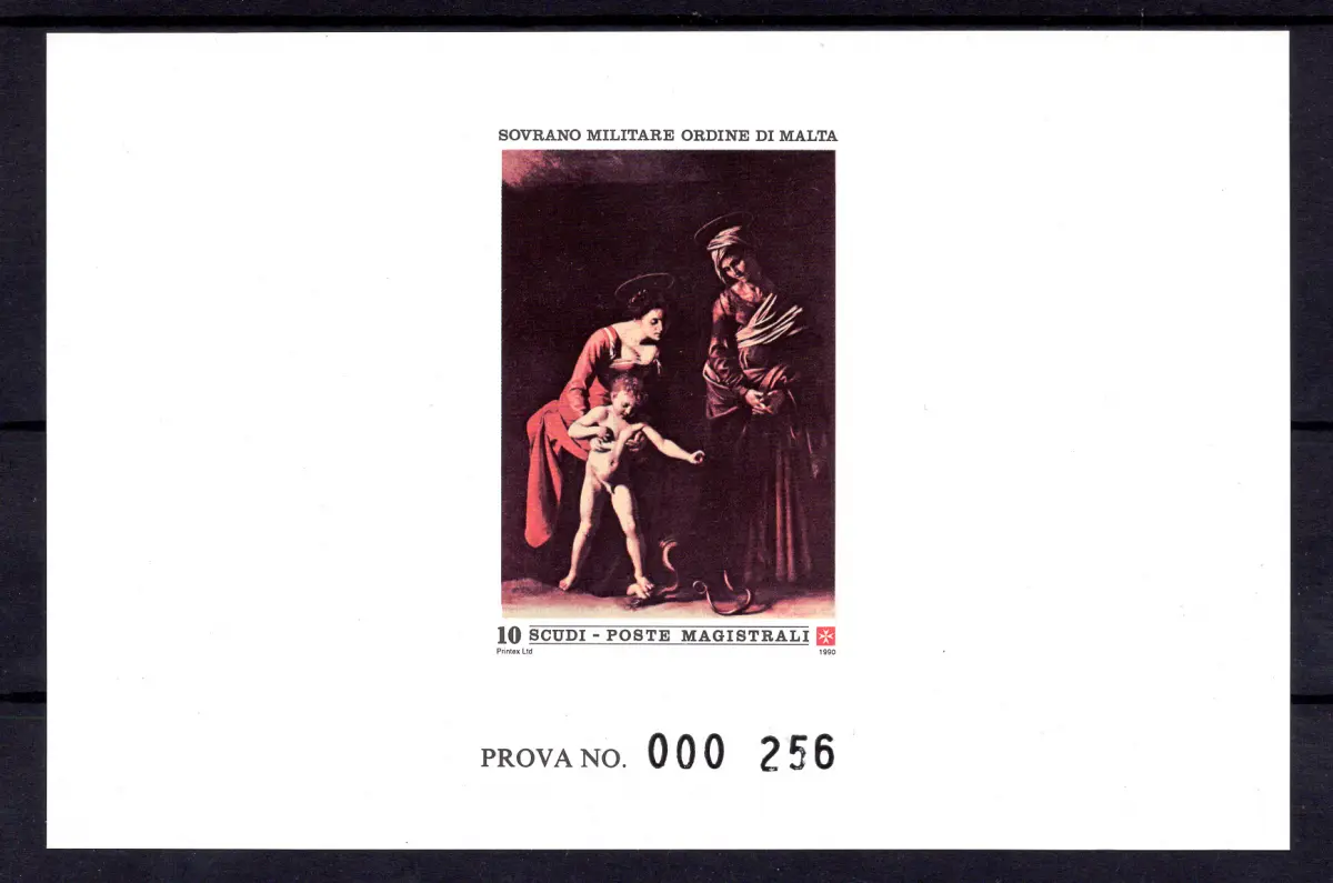 Ohne Gummi - SMOM - Caravaggio 10 s.n. 337, Druckprobebogen weißes Papier ohne Wasserzeichen Cod.1890/WEB
