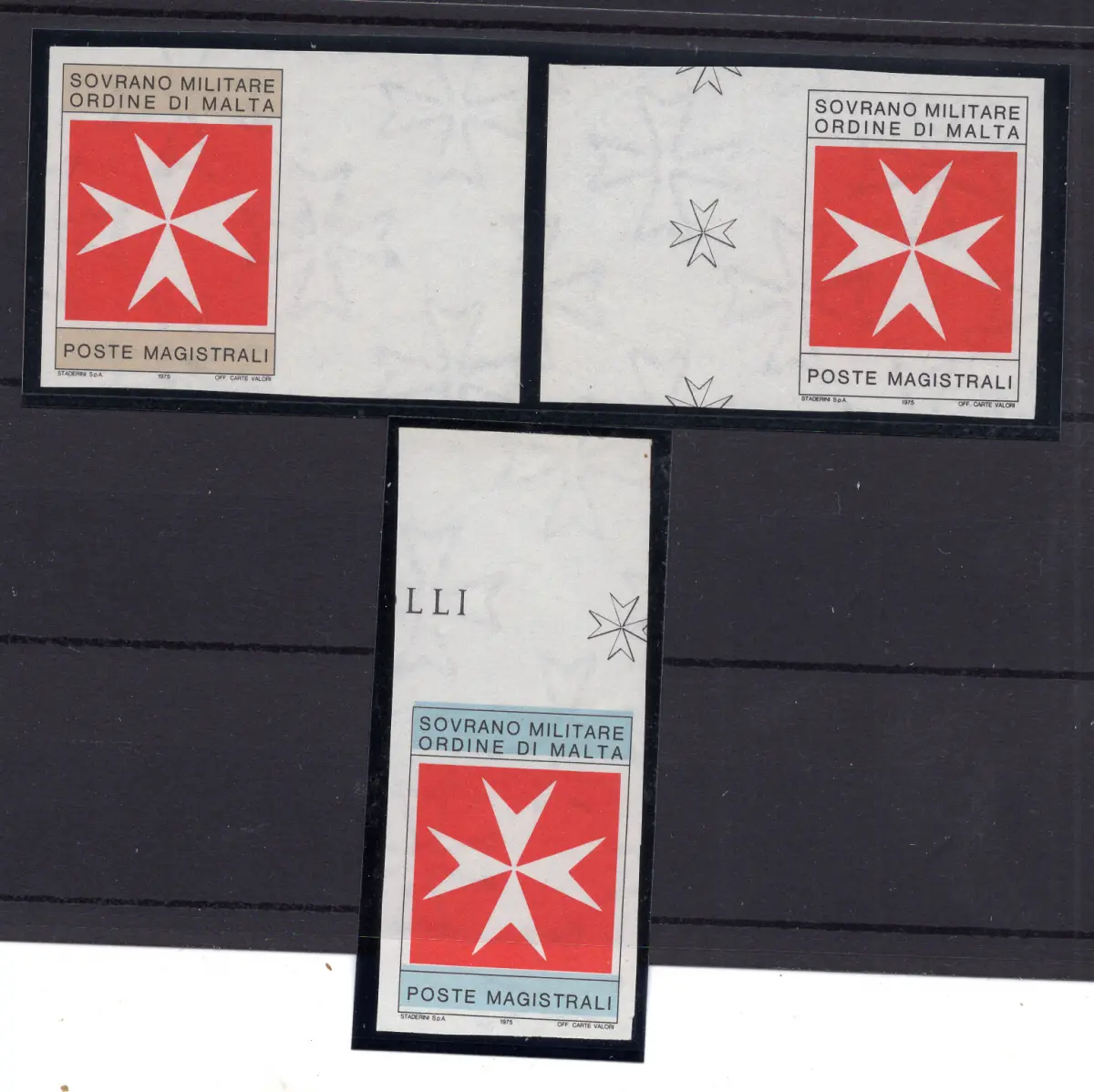 Vollgummi MNH - SMOM - Steuermarken Malteserkreuz drei verschiedene Werte ungezähnt ohne Aufdruck in den Farben Bistro, Himmel, Grau und Rot (Nr. 11, 14 und mehr im Hinweis) - postfrisch einwandfrei mit Vollgummi - Schönes Set alle mit Bogenrand Katalog Euro385 Cod.2302/WEB