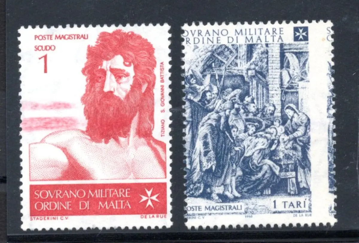 Ohne Gummi - Zwei verschiedene Sorten; 1 Sc. 'Tiziano' mit Farbfleck und 1 Tarì 'Weihnachten '68' versetzte Verzahnung - ohne Gummi wie gewohnt Nr. 1119/L