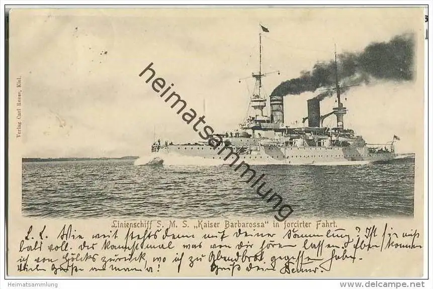 S.M.S. Kaiser Barbarossa - Linienschiff - Verlag Carl Reese Kiel (G32971) gel. 1901
